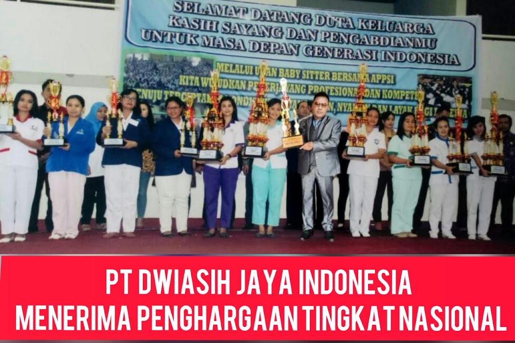 PT Dwi Asih Jaya Indonesia adalah lembaga pelatihan dan penempatan tenaga kerja baby sitter dan pembantu yang terbaik dan terpercaya di Indonesia yang sudah berdiri sejak tahun 2001 dan sudah memiliki Anggota kerja yang mencapai Ribuan Tenaga Kerja, dan kami menjamin identitas setiap calon tenaga kerja yang kami sediakan tentunya sudah melalui seleksi yang sangat ketat, Dan karena prestasinya sudah menerima beberapa penghargaan tingkat Nasional.